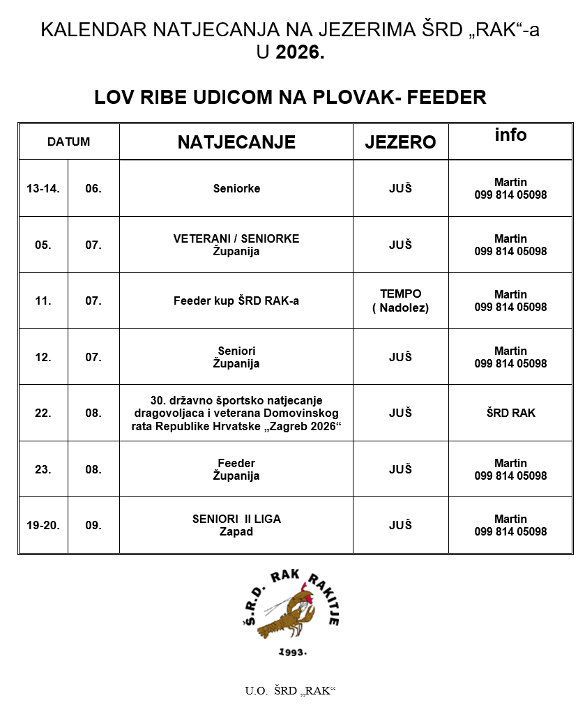 Plovak i Feeder natjecanja 2026
