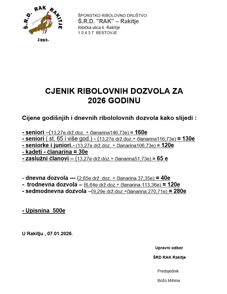 Cijene dozvola za 2026. godinu